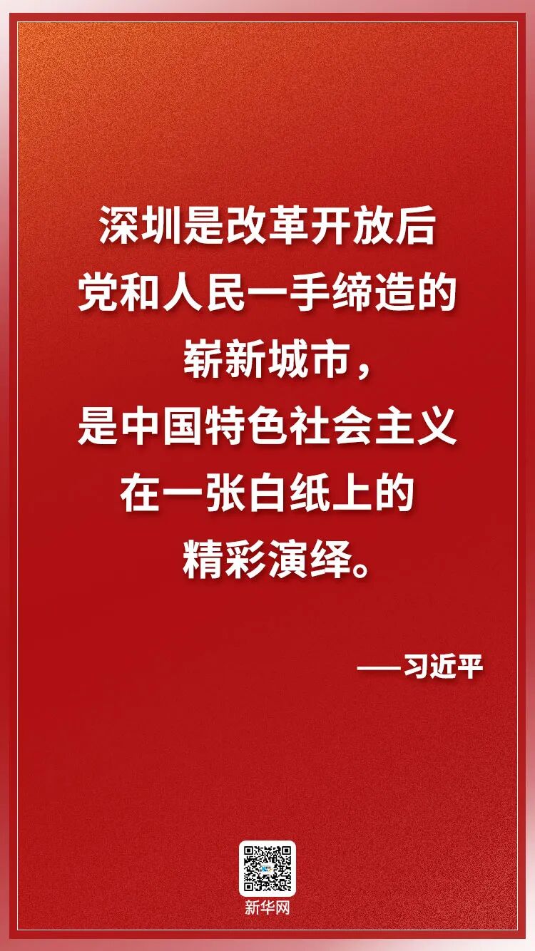 看似寻常最奇崛,成如容易却艰辛。深圳等经济特区一路走来,每一步都不是轻而易举的,每一步都付出了艰辛努力。深圳等经济特区改革发展事业取得的成就,是党中央坚强领导的结果,是广大干部群众开拓进取的结果,是全国人民和四面八方广泛支持的结果。在这里,我代表党中央、国务院和中央军委,向经济特区广大建设者,向所有为经济特区建设作出贡献的同志们,致以诚挚的问候!向各位来宾,向关心和支持经济特区建设的国内外各界人士,表示衷心的感谢!